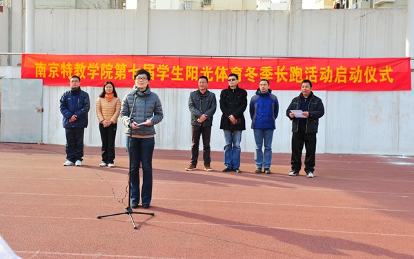崔书记在启动仪式上作了讲话,她勉励同学们牢记本届阳光体育的主题“励志从长跑开始”,通过长跑活动培养勇敢顽强的意志品质,做到既要学习好,又要身体好;同时对各院系开展阳光体育活动提出,科学安排,开拓创新,真抓实干,务求实效,努力提高学生体质的要求。孟家毅代表全院同学宣誓,积极参加“诚信长跑,挑战100”和“以行诺言,我要成长的活动,提高自我参与和锻炼的意识,合理安排时间开展阳光体育冬季长跑活动,培养战胜困难的意志力,提高身心素质,奉献特殊教育事业。