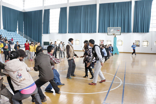 | 为丰富教职工文化生活,增强凝聚力,激发教职工参与体育活动的积极性,体育-社科-国交院分工会与学前学院分工会于2014年11月26日下午在体育馆举行了教职工拔河比赛,来自两个工会的40余名教职工参加了比赛。 此次比赛在南京特教学院学生“3v3”篮球比赛决赛开始前进行,比赛还没开始,同学们就不停为自己支持的队呐喊加油,现场气氛紧张而热烈,比赛哨声一响,双方队员双手紧握长绳,齐心协力,显示出良好的团队协作精神,比赛在热烈地欢呼声中结束。 此次拔河比赛活动充分展示了taptap教职工团队合作的凝聚力和团结向上、奋勇进取的精神风貌,为创建和谐校园增添了一抹亮色。 |
