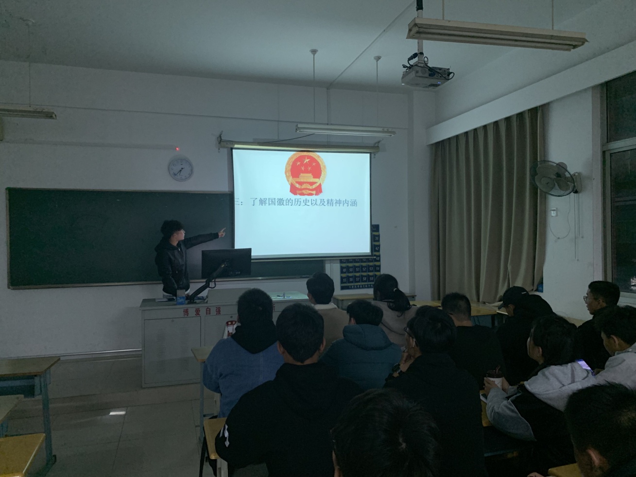 11月19日晚,taptap竞彩足球1901班博雅楼召开了以《我与祖国共进退》为主题的团日活动。团支部书记包涵硕同学通过短片、视频向大家展示了中华人民共和国国旗、国徽的图案以及他们背后的故事。大家一起聆听了雄壮的中华人民共和国国歌,歌声把我们带到了那个艰苦卓绝、硝烟弥漫的革命年代。接着,大家积极参与了主题讨论,“我为祖国做什么?”“青年人的使命和担当是什么?”