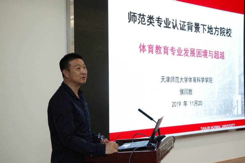 11月20日下午,天津师范大学侯闫胜教授应邀到taptap竞彩足球,为taptap竞彩足球全体师生做了一场“师范类专业认证背景下体育教育专业建设的困境与超越”的讲座,taptap竞彩足球副院长金梅教授主持讲座,taptap竞彩足球全体师生聆听了讲座。