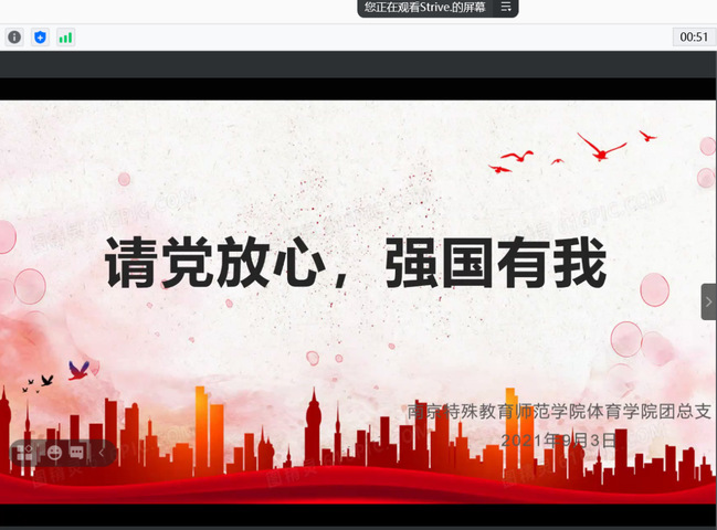随后,参会同学结合习近平总书记“七一”重要讲话精神、自身观看东京奥运会与残奥会的心得与体会,再次诠释了“为国争光、无私奉献、科学求实、遵纪守法、团结协作、顽强拼搏”为主要内容的中华体育精神,对“作为体育人,如何弘扬伟大建党精神与奥运精神”进行了热烈讨论,并在江子健同学的带领下重温入团誓词。