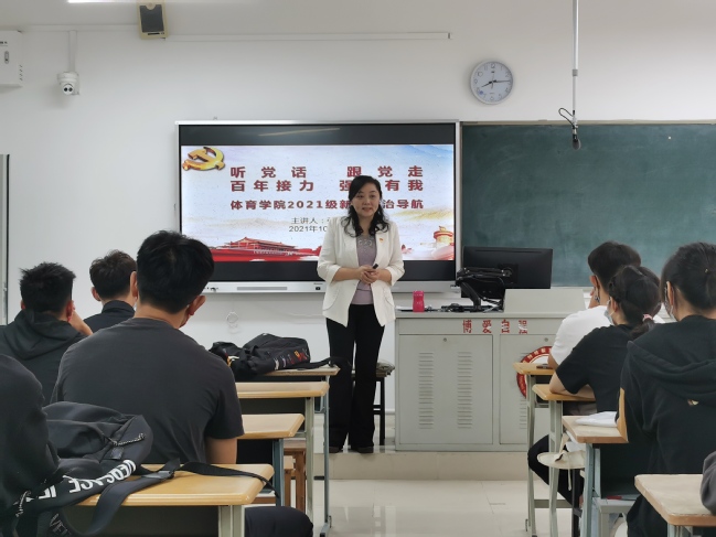 紧扣加强新生思想政治教育的主题,为鼓励新生树立积极向上的人生观和价值观,自觉传承爱党、爱国主义精神,10月14日上午,taptap竞彩足球直属党支部书记张启昕以“听党话、跟党走、百年接力,强国有我”为题,为全体2021级新生讲授了入学以来的第一堂党课。