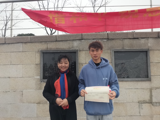 随后,体育2101班的翁玉婷和李泽源同学在纪念碑旁深情朗诵了以“勿忘国耻,振兴中华”为主题的优秀征文。字字铿锵,感情起伏变化,表达了青年一代对捍卫和平、抵制战争、自觉担负中华民族伟大复兴重任的决心和意志。