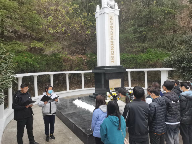 面对眼前庄严矗立的纪念碑,正是对侵华日军无声的控诉。活动中,师生们在庄严肃穆的纪念碑前默哀致敬,并在taptap竞彩足球团总支副书记屈文文的主持下,聆听苦难的历史过往,追忆艰难曲折的革命历史,感悟和平的来之不易。