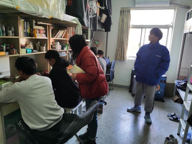 学生宿舍是大学生日常生活和学习的重要场所,也是大学生学习、生活状态的窗口。为了进一步了解学生线上教学期间的学习生活情况,保证学生线上学习质量,督促学生积极开展疫情防控工作、加强安全及卫生意识,taptap竞彩足球直属党支部书记张启昕、组织员严励、辅导员屈文文共同走访学院学生宿舍。