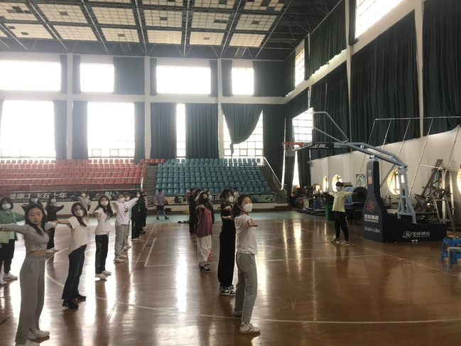 广播体操是体现学生精神面貌的重要窗口。4月4日上午,广播体操训练在体育馆内如火如荼地进行。运动健将杨帅老师凭借扎实的专业知识和过硬的专业技能,组织各学院广播操队员遵循身体及运动机能规律,开展热身运动、上下肢和全身的姿态训练,为即将开展的全校广播体操奠定基础。