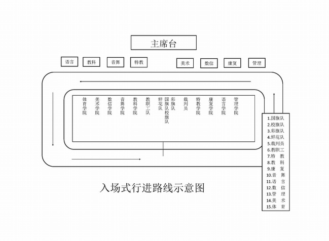 各学院方阵在主席台前的体育文化展示严格控制2分钟之内;满分100分,根据表演内容、表演状态、艺术水平、时间控制、学生仪表等进行“体育文化展示”评比。