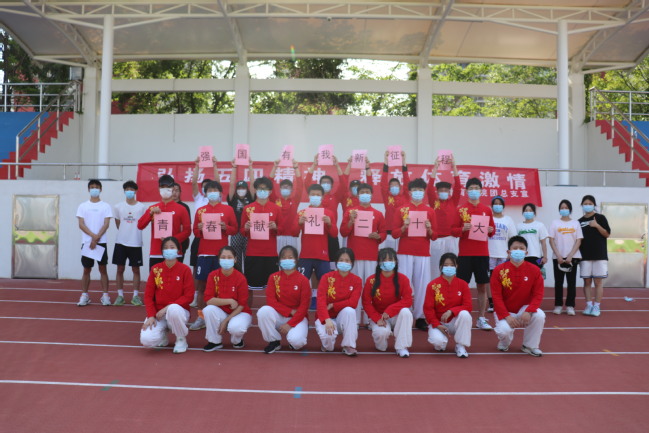 紧接着,体育2001班团支书夏韩宇洁领诵梁启超《少年中国说》片段,文中描述了中国“前途似海,来日方长”的壮丽前程,也讴歌了中国少年“身似山河挺脊梁”的朝气蓬勃和“今朝唯我少年郎”的奋斗精神。参赛运动员随即齐声吟诵“青春献礼二十大,强国有我新征程”