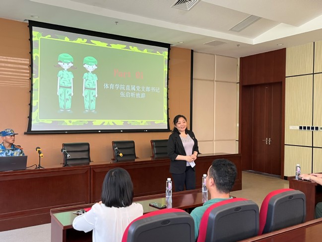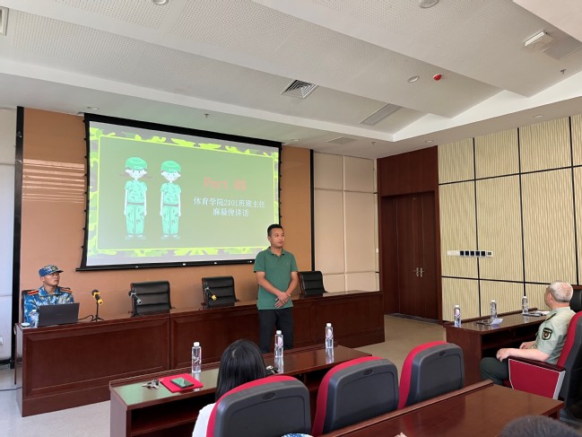 630日,taptap竞彩足球2021级学生军训动员大会在实验实训大楼103举行。taptap竞彩足球直属党支部书记张启昕、学工处人武部负责人邓顺和老师、体育2101班班主任麻晨俊和taptap竞彩足球学工办副主任屈文文出席大会。