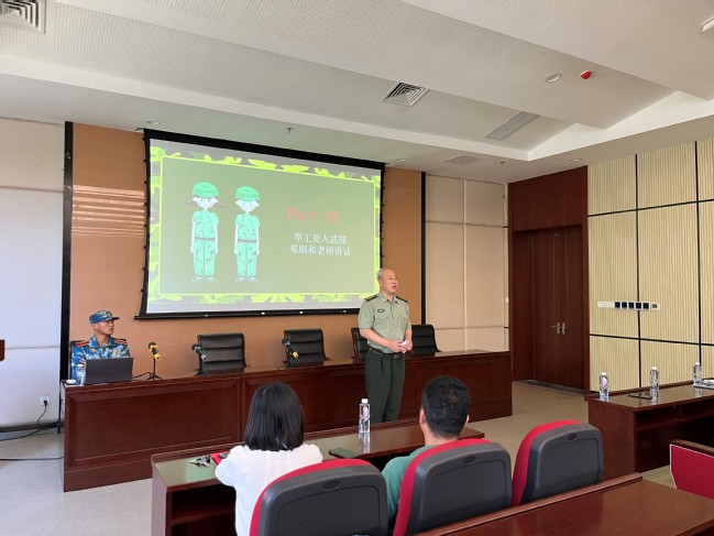 邓顺和老师回顾了自身二十余年的军旅生活,指出军训期间,除进行基本的军政训练外,还将结合学生管理教育实际情况,邀请将军、教授进校园,上好军事理论课,开展军地联欢晚会、应急救助培训等活动,以进一步充实军训生活。