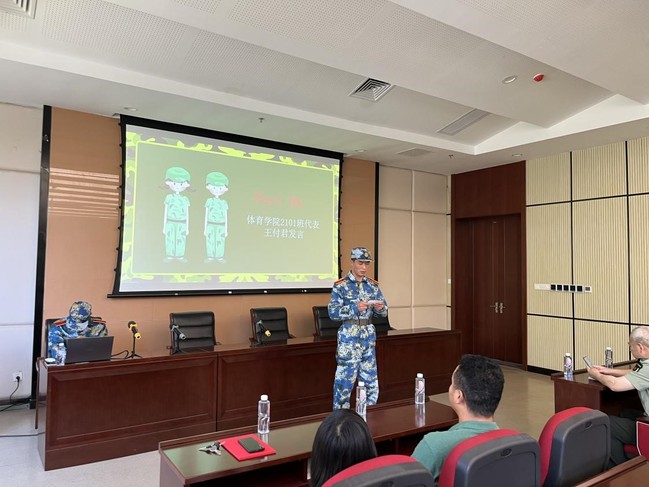 随后,麻晨俊老师号召参训学生以饱满的精神和昂扬的斗志参加训练,发扬体育人的优良品质,做克服困难的强者,切实在思想品质、意志能力、军事知识上有所提高、有所收获。屈文文老师重点介绍了本次军训的日程安排与总结评选的相关事宜。
