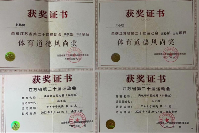 在历经5天的激烈比赛中,王骏飞同学在男子100米的比赛中跑出了11.60秒(男子国家二级运动员标准为11.74秒),达到了国家二级运动员的标准,杨文慧和王小牧同学在女子跳高比赛中分获第五名和第八名,其中王小牧同学被赛会主办方评为“体育道德风尚奖运动员”。王付君同学不畏困难和挑战,在男子200米和400米的比赛中与多位国家健将级运动员较量,体现出做为一名体育人的那股“精气神”。正因为此次不俗的表现,赵伟健老师被赛会主办方评为“体育道德风尚奖教练员”。