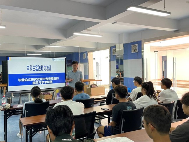 此次专题讲座主要包括两个部分内容:一是科研项目论证报告的撰写内容及规范;二是本科毕业论文的撰写内容及写作要求。首先,戴教授从对“为什么要写开题报告、写什么、如何写?”这一问题的思考开始本次专题讲座,戴教授先后讲授了开题报告中选题的目的及意义、选题的程序与方法、国内外研究现状分析、参考文献、研究的主要内容、拟解决的重点难点以及创新之处、研究方法和技术路线、写作进度安排等各部分应撰写的内容及写作规范。最后,戴教授结合实际案例逐一解析在开题报告撰写过程中容易出现的问题和易犯错误,提醒同学们要注意避免同类问题的发生。此次讲座内容丰富、理论结合实践,讲座环节丝丝相扣、互动频繁,获得了师生的一致好评。