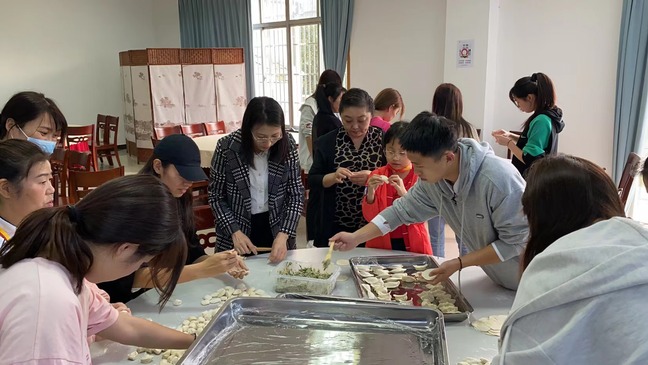 主题红歌汇活动结束后,taptap竞彩足球直属党支部书记张启昕和值班老师们一起和同学们和面、擀面、包饺子,用心、用情、用爱共同营造家“香”味。学生和老师围在一起包饺子、共享美食,共同感受爱与温馨。