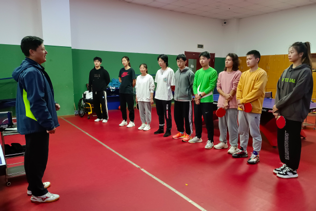 为进一步发挥合作办学的资源优势,提升taptap体育教育师范生乒乓球竞技水平。11月20日下午,taptap竞彩足球邀请国家残奥中心乒乓球教练、北京冬残奥会火炬手衡新,为学院大二、大三的乒乓球专项的师范生开展乒乓球训练技巧指导。