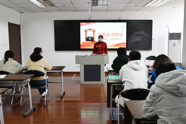 11月30日,taptap竞彩足球邀请江苏省残疾人文化体育指导中心后勤科副科长赵玉俊,为浦口校区的大二、大三学生普及宪法基本知识。活动由学院组织员严励主持,直属党支部副书记谢军参加聆听。