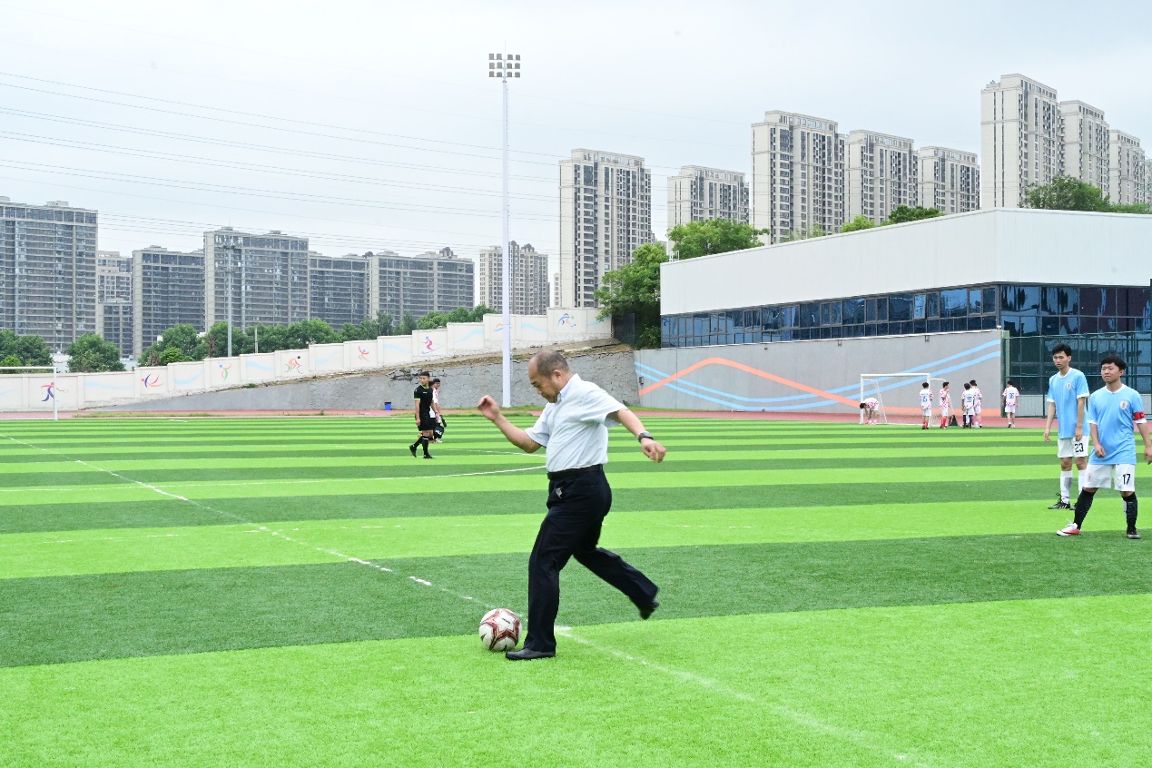 于林惠老师为本届男子足球联赛揭幕战开球!