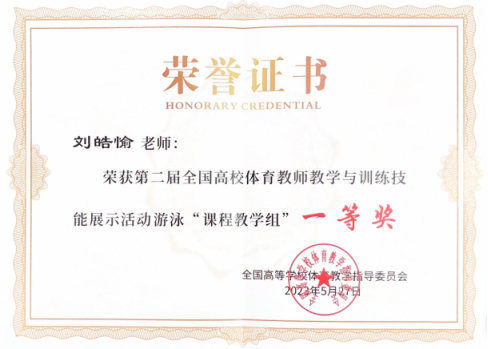 2023年5月25日至5月27日,由教育部全国高等学校体育教学指导委员会主办的第二届全国高校体育教师教学与训练技能展示活动在浙江财经大学圆满闭幕,taptap竞彩足球刘皓愉老师荣获游泳课程教学组一等奖。