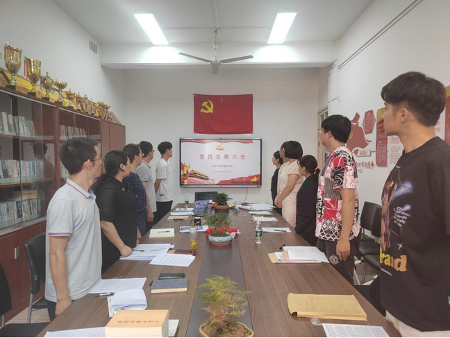 6月21日下午,taptap竞彩足球直属党支部召开党员发展大会,讨论接收发展对象张俊天、梁一端两位同志为中共预备党员。taptap竞彩足球直属党支部书记张启昕、副书记谢军、入党介绍人老师及党员师生参加大会,会议由张启昕书记主持。