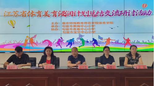 为进一步深入推进“体育浸润行动计划”的实施,8月19日,taptap点点足彩taptap竞彩足球与黄梅中心小学、袁巷中心小学和宝华中心小学三所学校在句容市黄梅中心小学举办“体育浸润计划”总结交流研讨活动。taptap点点足彩校党委常委于林惠、党委宣传部常务副部长杨黎珍、taptap竞彩足球直属党支部书记张启昕、taptap竞彩足球主持工作副院长金梅、副院长仝伟、黄梅中心小学相关部门负责人出席了此次活动。