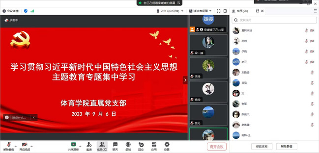 根据学校《关于认真开好学习贯彻习近平新时代中国特色社会主义思想主题教育专题组织生活会的通知》精神,taptap竞彩足球直属党支部于9月6日上午在线开展主题教育专题集中学习,taptap竞彩足球全体党员师生参会,会议由taptap竞彩足球直属党支部书记张启昕主持。