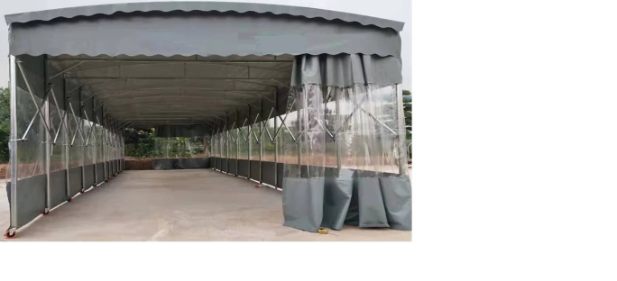 3、雨棚宽度约为7.2米,长度约为18米,带长边围布,边高不低于3.5米,如尺寸有少量误差,以现场勘察确认为准,不得因项目需求与实际有误差为由进行报价变更,雨棚需固定到现有围网框架上。围布颜色待定,参考式样如下: