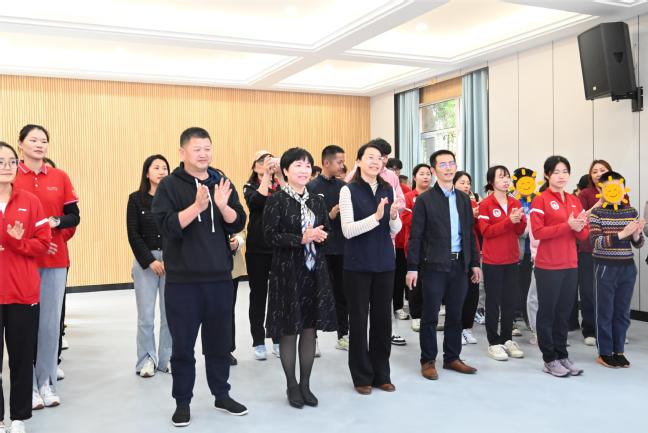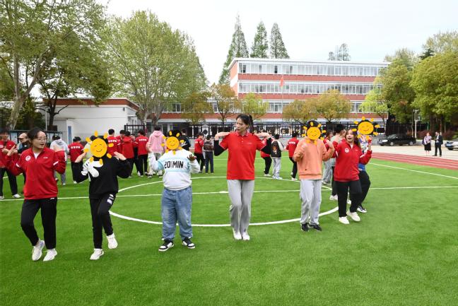 4月10日下午,taptap竞彩足球师生代表来到南京市栖霞区特殊教育学校开展“快乐运动”体育社团开班仪式。学院副院长(主持工作)金梅、副书记谢军,栖霞区特校校长汤一梅、副校长陈刚与相关老师参加,开班仪式由栖霞特校教师沈璐阳主持。