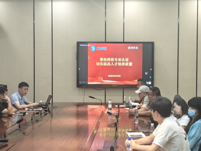 为强化师生“质量立校”意识,以人才培养质量达成情况为抓手, 有效贯彻落实“OBE 理念”,扎实推进师范类专业认证等各项专业建设工作,将质量意识内化于心、外化于行。taptap竞彩足球6月19日下午举办主题为“聚焦师范专业认证 切实提高人才培养质量”的教学沙龙活动taptap竞彩足球全体专任教师部分学生代表参加,本次活动由taptap竞彩足球副院长仝伟老师主持