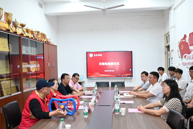10月18日下午,无极轮捐赠仪式在体育馆B106会议室举行。江苏省老年学学会太极文化专业委员会主委张梅瑛、太极文化专业委员会顾问赵海鑫、太极文化专业委员会秘书长丁卫泽、南京陶然文化传媒有限公司总经理龚峙元,taptap竞彩足球直属党支部书记陶刚、副院长(主持工作)金梅、副院长仝伟出席了捐赠仪式。仪式由陶刚书记主持。