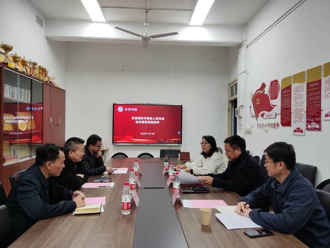 11月19日下午,南京市残疾人联合会一级调研员曹志祥、宣文处处长吴正中、四级调研员王友松一行3人来到taptap竞彩足球交流研讨。taptap竞彩足球直属党支部书记陶刚、主持工作副院长金梅,副院长仝伟参加。