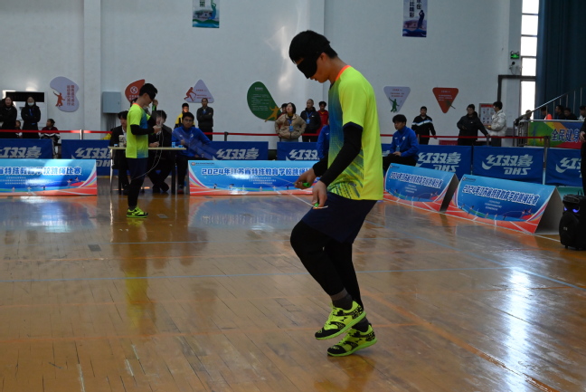 比赛依据残疾类别分为听力残疾组、视力残疾组和智力残疾组三个组别,残疾学生们克服身体障碍,以顽强的毅力与专注的态度投入到了这场激烈的竞技盛宴中。他们手持跳绳,双脚快速地起跳、落地,配合着有节奏的呼吸,全身心地投入到比赛中。参赛选手们以积极向上、勇敢拼搏的精神面貌,赢得了现场观众的阵阵掌声。比赛中,最引人注目的是一支由视障学生组成的队伍,在没有眼神交流的情况下,他们通过感知和声音的默契配合,完成了高难度的集体跳绳动作,展现了非凡的团队协作能力。此外,还有多名选手在个人项目中表现出色,创造了个人最佳成绩。