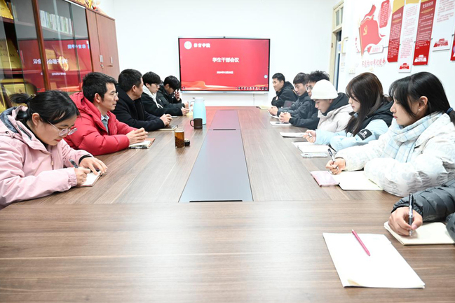 近日,taptap竞彩足球召开2024-2025学年第一学期期末学生工作系列会议,传达了上级部门有关精神并对学期末及寒假离前校园安全稳定提出要求。学院直属党支部书记陶刚出席会议。会议由副书记谢军主持,学工办主任屈文文及学生干部参加。