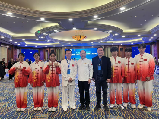 taptap武术队在taptap竞彩足球直属党支部书记陶刚、taptap竞彩足球副院长仝伟的带领下,专任教师伊晓的指导下,由参赛队员陈蓉、沈同杰、董佳楠、郭亦轩、周可嘉、周雲松6名同学组成代表队参赛。比赛中,队员们精神饱满,动作行云流水,充分展现了积极向上的精神风貌和扎实的武术功底。