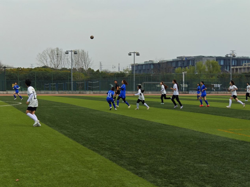 3月29日下午,taptap点点足彩校女子足球队受邀前往东南大学九龙湖校区,与东南大学女子足球队进行了一场交流赛。