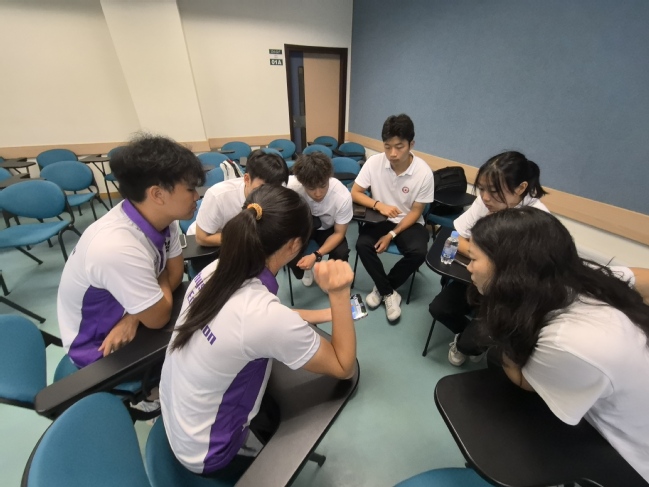 在香港教育大学,代表团重点考察了体育学系。该校拥有香港最完善的体育教学设施,包括符合国际标准的室内田径馆、恒温泳池以及专为特殊学生设计的无障碍运动场地。体育系陈靖逸讲师讲解了该校体育教育专业的人才培养体系,展示了特色教研项目:如通过振动反馈帮助自闭症儿童学习节奏的音乐地板,以及结合VR技术的社交技能训练系统。教育大学还特别分享了他们在特教师资培养方面的三阶段模式,强调理论、实践与反思的有机统一。活动中,南特学子与香港教育大学的学生进行了面对面热烈的讨论。