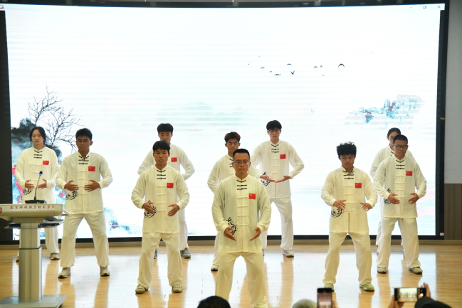 两岸青年掌心相抵同练一套拳法,招式起落间,同宗同源的血脉在推掌转腕中苏醒;无极轮转时,隔不断的乡愁在圆弧轨迹里消融。