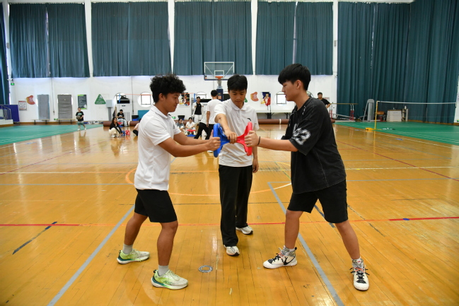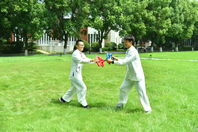 真正的情感在身体互动中悄然生长。体验营特别设计的无极轮交流赛,台湾青年李品毅正与南京青年进行一场无极轮对抗。两人之间的无极轮不断变换角度,在进退间寻找平衡。李品毅额角沁出细汗,笑容却愈发灿烂:“这项运动很有趣,可以四两拨千斤!”南京青年郭元启在与台湾青年切磋完无极轮后,意犹未尽,“虽然一些体育运动在两岸的叫法不同,但心相通,就像操作无极轮,圆通贯通,有来有往!”