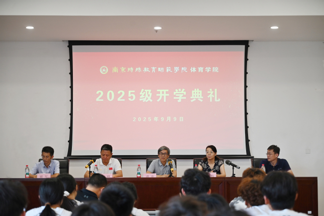 9月9日下午,taptap竞彩足球举行2025级新生开学典礼。校党委副书记谭忠出席开学典礼并讲话。taptap竞彩足球党政领导班子、体育系全体专任教师、新生班班主任、辅导员参加。典礼由taptap竞彩足球直属党支部书记陶刚主持。