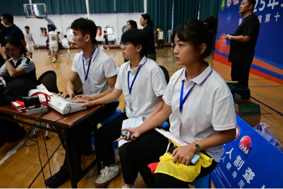 三人制篮球节奏极快,“计时”工作显得尤为关键。志愿者们紧盯着计时钟,掌控着比赛时间的每一秒、整体的每一分钟。他们精神高度集中,不敢有丝毫懈怠,因为他们的指尖,决定着一次进攻是否违例,一场比赛何时终结。他们在场边构筑了一道“时间防线”,用绝对的精准,守护着比赛最基本的公平。