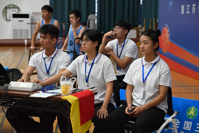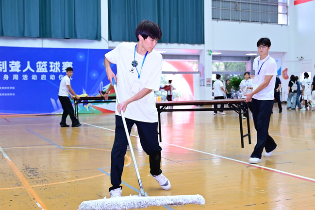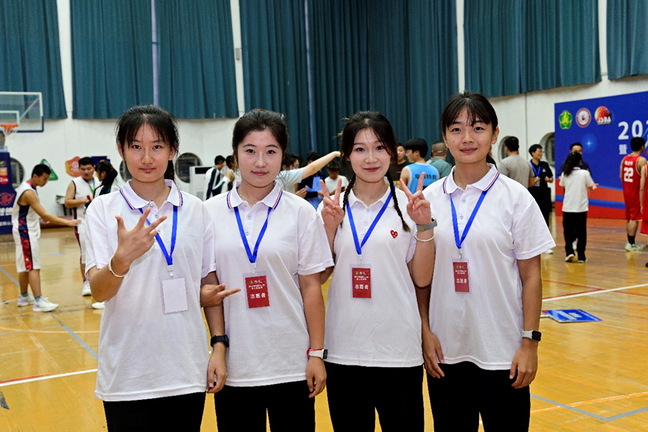 从晨曦微露到华灯初上,志愿者们的身影遍布赛场的每一个角落。在比赛正式开始前,志愿者们的身影就以开始忙碌起来,在迎接处,志愿者们冒着大雨前往机场、火车站以及校门口只为能够在第一时间迎接参赛队伍;在签到处,他们耐心细致地核对球员信息,引导队伍入场;在记录台,他们全神贯注地操作计分器,精准记录每一个得分与犯规;在场边,他们充当助理裁判维持着赛场秩序,确保比赛环境安全有序;在场上,他们以扎实的手语翻译功底建立起了裁判员与运动员之间的沟通桥梁。无论工作多么繁琐,他们都始终保持着高度的责任心和饱满的热情。