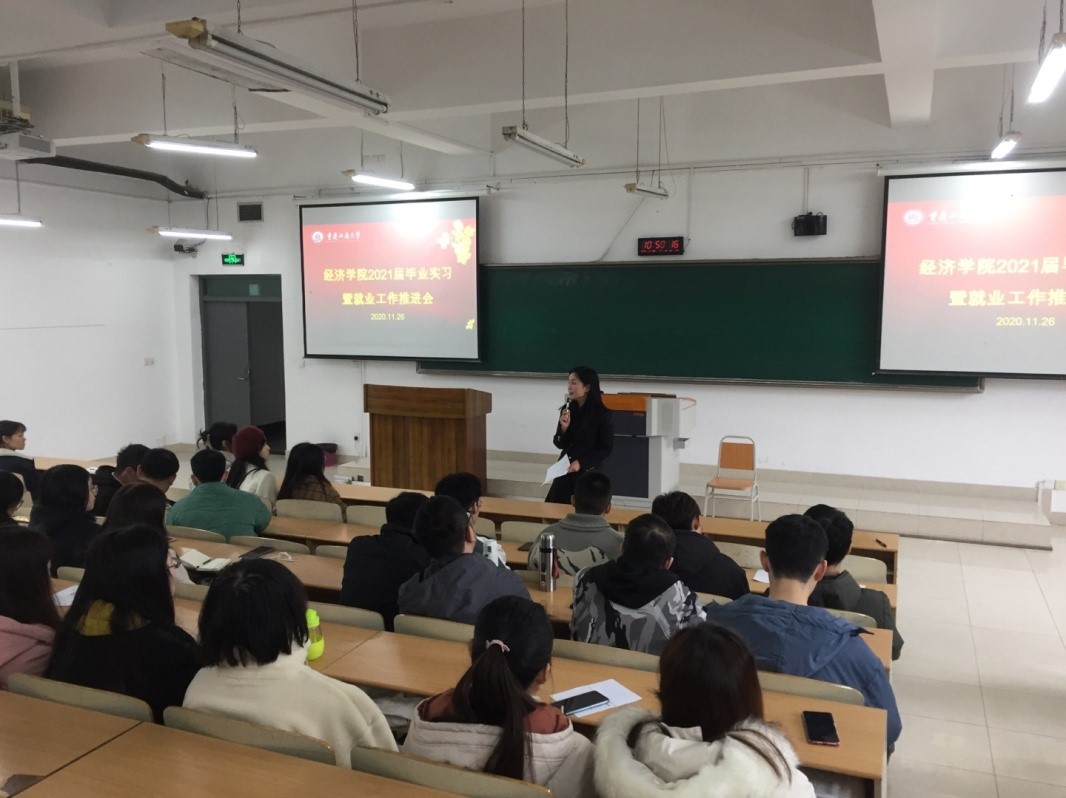 为了全面落实学校关于毕业实习要求,积极推进毕业生就业工作,近日,雷竞技RAYBET最新版各系部先后组织召开了2021届学生毕业实习动员暨就业工作推进会。雷竞技RAYBET最新版分党委副书记兼副院长王燕、副院长朱沙、经济学系主任李然、贸易经济系主任杨海丽、国际经济与贸易系主任蒋兴红,2021届学生辅导员邓雪霜、张涛、文理分别出席了相应的动员推进会。
