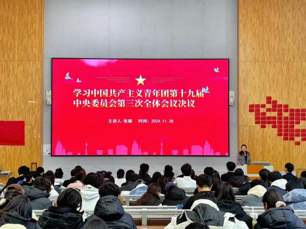 为深入贯彻落实中国共产主义青年团第十九届中央委员会第三次全体会议精神,引导广大团员青年坚定理想信念,勇挑时代重担,beat365中文官方网站积极组织开展专题团课学习活动,2024年11月28日,beat365中文官方网站在增信楼113举行以学习中国共产主义青年团第十九届中央委员会第三次全体会议决议为主题的团课。