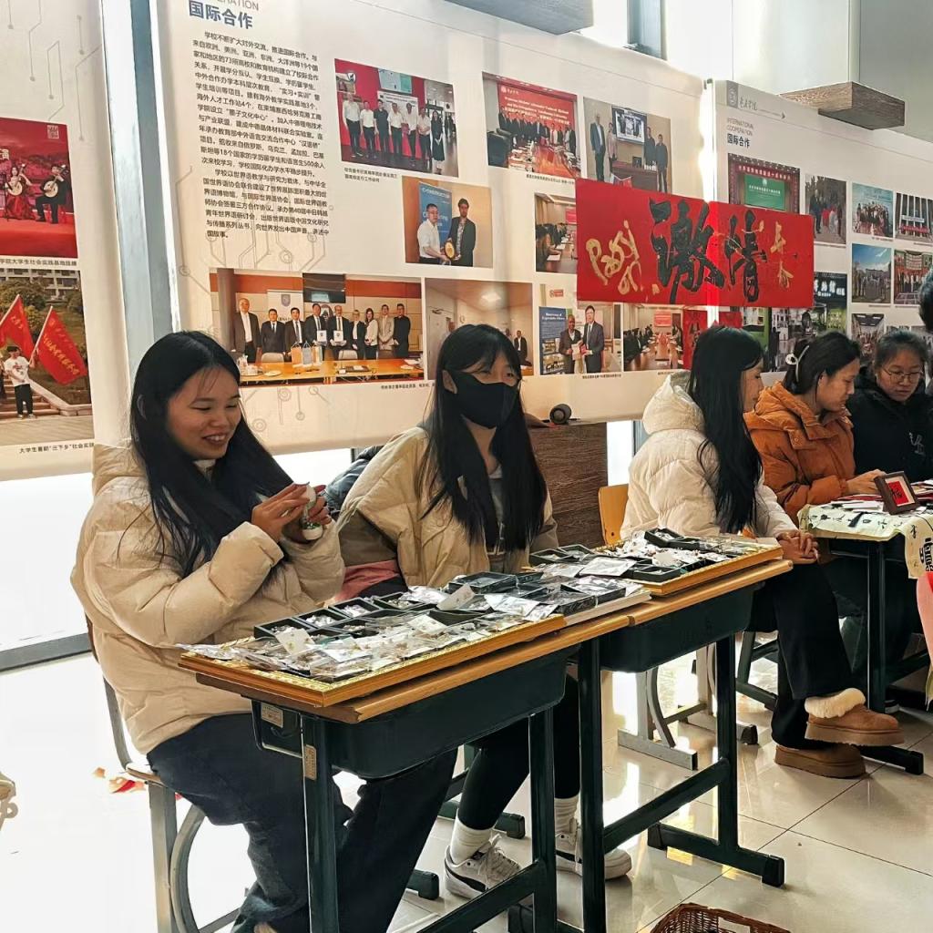 活动现场,协会成员热情地为师生介绍产品的设计理念和制作过程。不少同学表示,文创葫芦烙画和玉石珍珠手串等不仅是一件艺术品,更是一份承载文化情感的礼物。购买者纷纷表示,这些我校大学生自己手工创作的文创产品既能装点生活,也能作为送给亲朋好友的特别心意。
