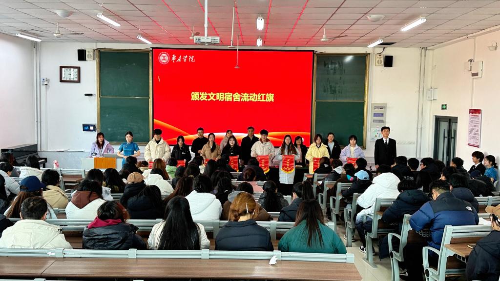 会上,首先宣读了文明宿舍评选办法以及文明宿舍名单,并对文明宿舍和党员宿舍进行了颁奖和授牌。文明宿舍代表和党员宿舍代表分别上台发言,分享了他们在宿舍建设中的经验和感悟,表达了对学院的感激之情,以及今后继续努力的决心。
