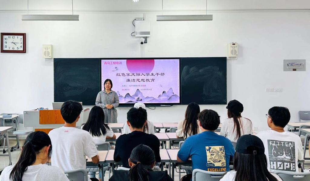 为广大学生干部自觉传承“红色家风”,进一步推动学生干部学纪、知纪、明纪、守纪,绷紧廉洁自律之弦,6月26日,beat365中文官方网站于增信楼314室举办学生骨干“青马工程红色家风”廉洁思想培训。辅导员张春侠主讲。