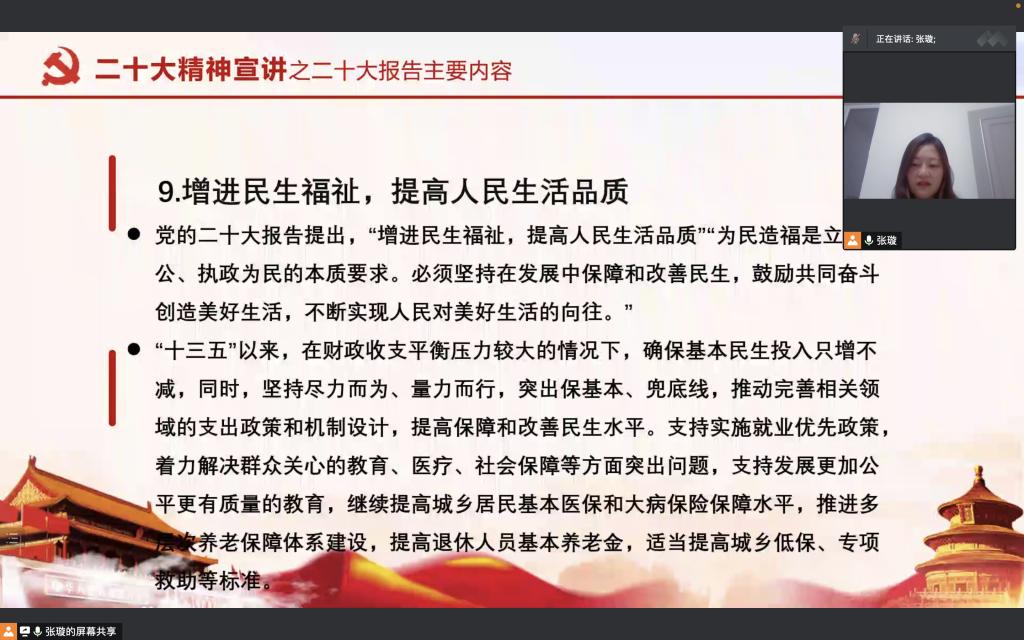beat365中文官方网站坚持全面深入系统学习宣传党的二十大精神,11月24日,团总支副书记张璇深入团支部、社团,主持召开团干部线上宣讲交流会,让党的二十大精神直达基层学生干部。