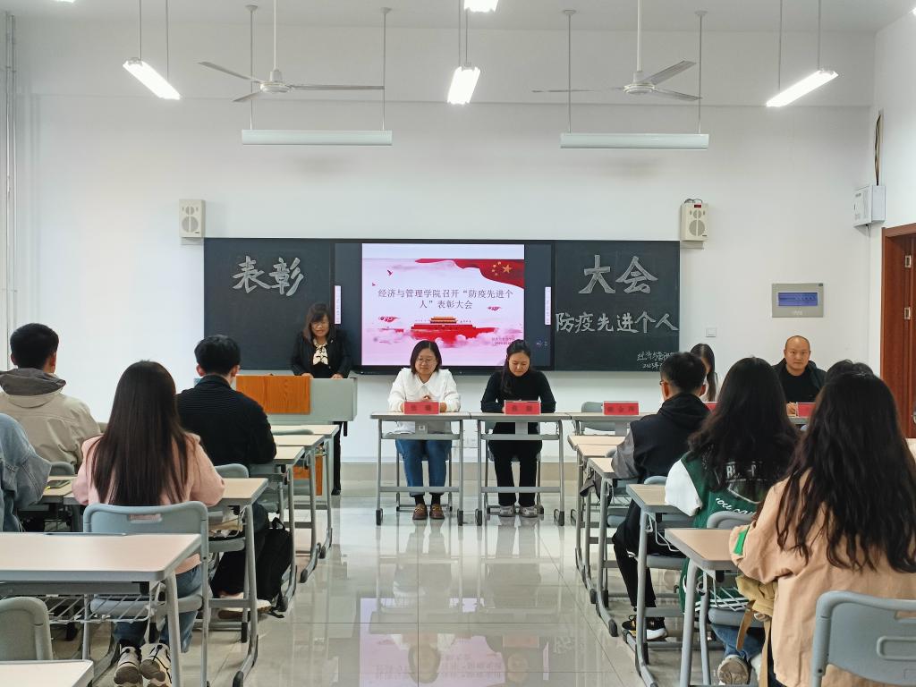 为弘扬伟大抗疫精神,发挥模范榜样作用。3月6日,beat365中文官方网站于豁然楼A371室召开了“防疫先进个人”表彰大会。本次会议由beat365官网党总支副书记谢金萍主持,团总支副书记张璇、辅导员张春侠、张璐、张坤、先进个人李超等22人参会。