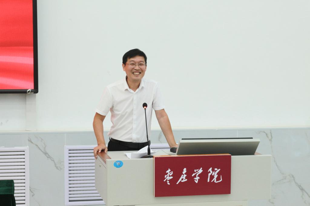 教师代表韩科峰上台发言,他向2022届毕业生表示热烈的祝贺,希望大家书写出人生中更为辉煌的崭新篇章。