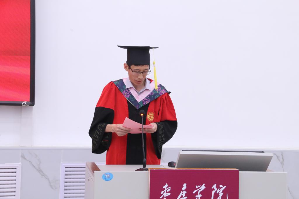 副院长杨位留宣读2022届学士学位授予决定,并宣读毕业生名单。校党委委员、副校长安涛教授为2022届本科毕业生颁发学位证书。