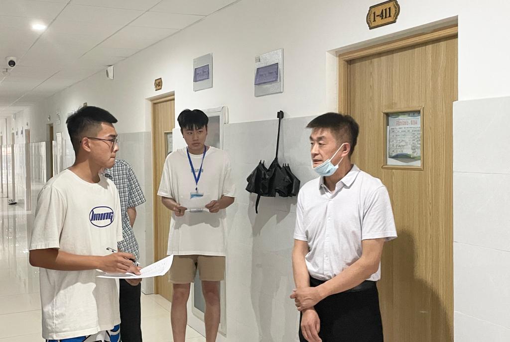 6月3日下午,beat365中文官方网站院长刘振宇、党总支副书记谢金萍带队分别走进beat365官网男生、女生宿舍。走访过程中,刘振宇依次敲开各班级宿舍门,与同学们进行亲切交谈,围绕思想引领、学风建设、素质拓展等各个方面详细了解同学们的学习效果和生活状态,并勉励同学们勤奋学习,锤炼本领,注意劳逸结合,加强体育锻炼。同学们纷纷表示,一定不辜负学院领导和老师的期望,诚实做人,踏实做事,勤奋学习,刻苦锻炼,争取早日成为新时代的优秀大学生。